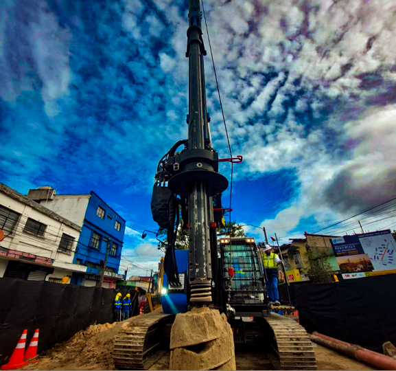 Técnica que utiliza una tubería de acero para mantener estable el agujero durante la perforación en terrenos difíciles. Esto permite excavar de manera segura y colocar el concreto y refuerzo, garantizando cimentaciones sólidas y duraderas en suelos inestables o con agua